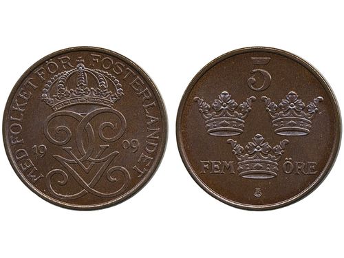 Coins, Sweden. Gustav V, MIS I.1a, 5 öre 1909. 0. Coins, Sweden. Gustav V, MIS I.1a, 5 öre 1909. 0. Visa mindre