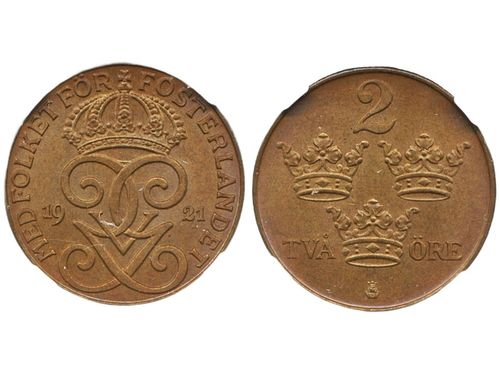 Coins, Sweden. Gustav V, MIS I.10, 2 öre 1921. Graded by NGC as MS66 BN. 0. See certification at NGC Coins, Sweden. Gustav V, MIS I.10, 2 öre 1921. Graded by NGC as MS66 BN. 0. See certification at NGC Visa mindre