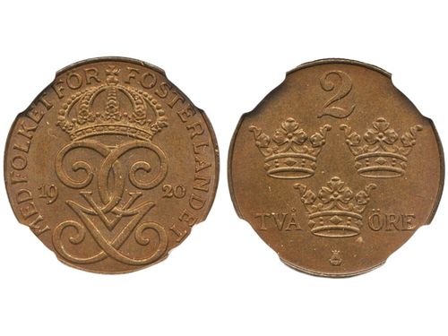 Coins, Sweden. Gustav V, MIS I.9b, 2 öre 1920. Graded by NGC as MS65 BN. 01/0. See certification at NGC Coins, Sweden. Gustav V, MIS I.9b, 2 öre 1920. Graded by NGC as MS65 BN. 01/0. See certification at NGC Visa mindre