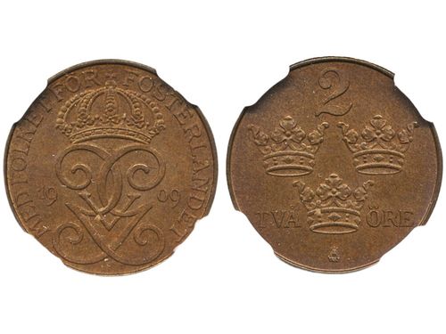 Coins, Sweden. Gustav V, MIS I.1, 2 öre 1909. Graded by NGC as MS65 BN. 0. See certification at NGC Coins, Sweden. Gustav V, MIS I.1, 2 öre 1909. Graded by NGC as MS65 BN. 0. See certification at NGC Visa mindre