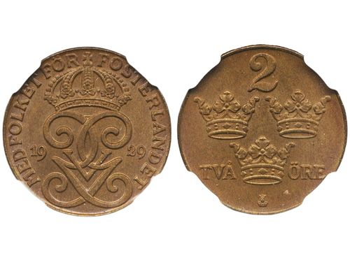 Coins, Sweden. Gustav V, MIS I.18a, 2 öre 1929. Graded by NGC as MS65 BN. 0. See certification at NGC Coins, Sweden. Gustav V, MIS I.18a, 2 öre 1929. Graded by NGC as MS65 BN. 0. See certification at NGC Visa mindre