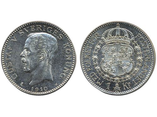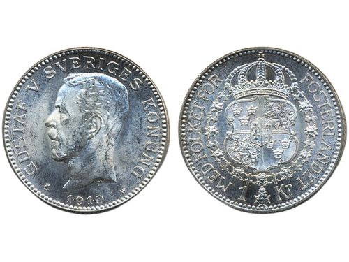 Coins, Sweden. Gustav V, MIS I.1, 1 krona 1910. 01. Coins, Sweden. Gustav V, MIS I.1, 1 krona 1910. 01. Visa mindre