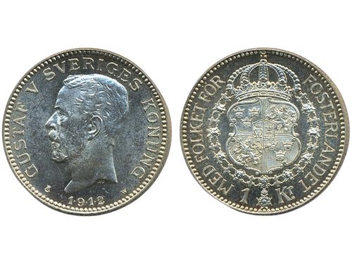 Coins, Sweden. Gustav V, MIS I.2, 1 krona 1912. 01/0. Coins, Sweden. Gustav V, MIS I.2, 1 krona 1912. 01/0. Visa mindre