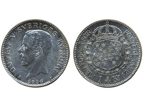 Coins, Sweden. Gustav V, MIS I.7, 1 krona 1918. Good 01. Coins, Sweden. Gustav V, MIS I.7, 1 krona 1918. Good 01. Visa mindre