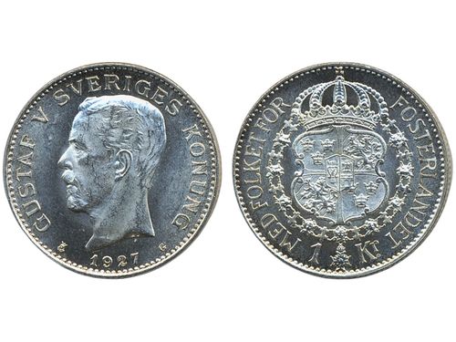 Coins, Sweden. Gustav V, MIS I.13, 1 krona 1927. 0. Coins, Sweden. Gustav V, MIS I.13, 1 krona 1927. 0. Visa mindre