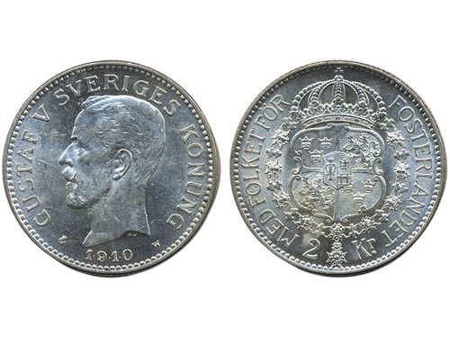 Coins, Sweden. Gustav V, SM 4 b, 2 kronor 1910. 01. Coins, Sweden. Gustav V, SM 4 b, 2 kronor 1910. 01. Visa mindre