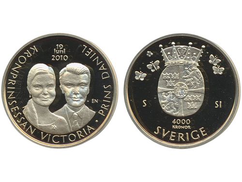 Coins, Sweden. Carl XVI Gustaf, SM 1, 4000 kronor i guld 2010. 12 g, The wedding between crown princess Victoria and Dan.. Läs mer Coins, Sweden. Carl XVI Gustaf, SM 1, 4000 kronor i guld 2010. 12 g, The wedding between crown princess Victoria and Daniel Westling. 0. Mintage: 4370. Visa mindre