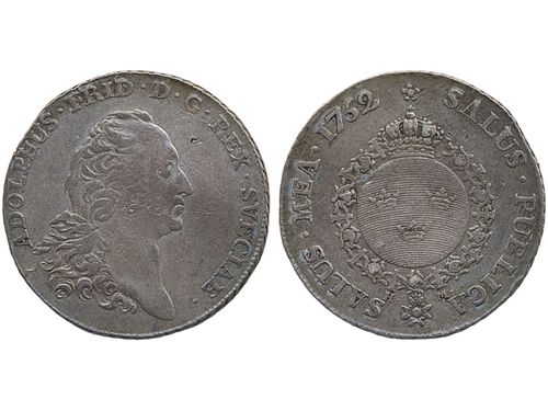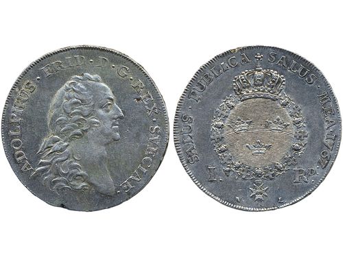 Coins, Sweden. Adolf Fredrik, SM 56, 1 riksdaler 1767. 28.94 g. Stockholm. Planchet flaws. Ex. Nordlind Myntauktion 26–2.. Läs mer Coins, Sweden. Adolf Fredrik, SM 56, 1 riksdaler 1767. 28.94 g. Stockholm. Planchet flaws. Ex. Nordlind Myntauktion 26–27 November 2011, lot 483. 1+. Visa mindre