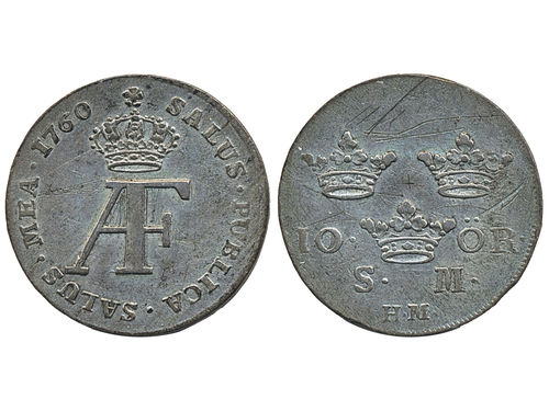 Coins, Sweden. Adolf Fredrik, SM 93, 10 öre 1760. 7.01 g. Stockholm. Scratched. Better date. Ex. Myntkompaniet 22, lot 325. 1/1+. Coins, Sweden. Adolf Fredrik, SM 93, 10 öre 1760. 7.01 g. Stockholm. Scratched. Better date. Ex. Myntkompaniet 22, lot 325. 1/1+. Visa mindre