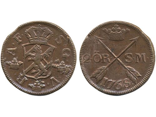 Coins, Sweden. Adolf Fredrik, SM 179, 2 öre SM 1768. 28.36 g. Avesta. Minor edge clip from production. Ex. Myntkompaniet 9 lot 224. 01. Coins, Sweden. Adolf Fredrik, SM 179, 2 öre SM 1768. 28.36 g. Avesta. Minor edge clip from production. Ex. Myntkompaniet 9 lot 224. 01. Visa mindre
