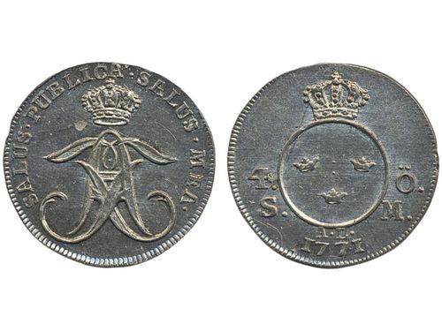 Coins, Sweden. Adolf Fredrik, SM 80, 4 öre 1771. 2.77 g. Stockholm. 01. Coins, Sweden. Adolf Fredrik, SM 80, 4 öre 1771. 2.77 g. Stockholm. 01. Visa mindre