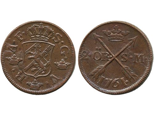 Coins, Sweden. Adolf Fredrik, SM 172, 2 öre SM 1761. 28.38 g. Avesta. Lustrous and attractive. 1+/01. Coins, Sweden. Adolf Fredrik, SM 172, 2 öre SM 1761. 28.38 g. Avesta. Lustrous and attractive. 1+/01. Visa mindre
